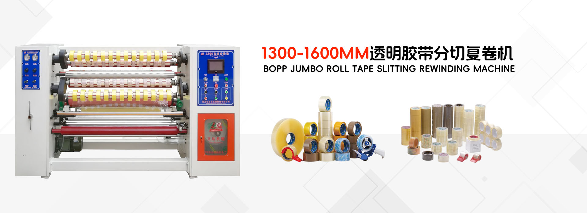 我公司主要產品:BOPP涂布機、PE涂布機、膠帶分切機、分條機、復卷機、自動切臺、復卷裁切機、印刷機等。